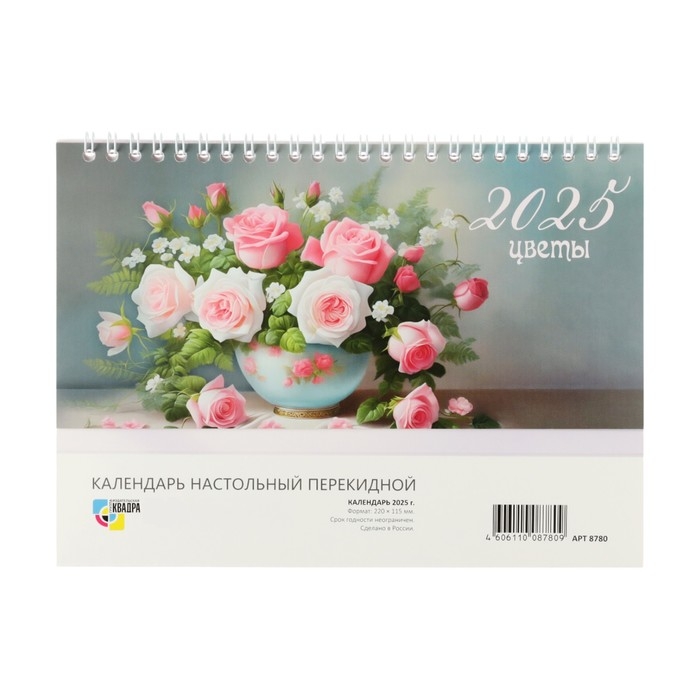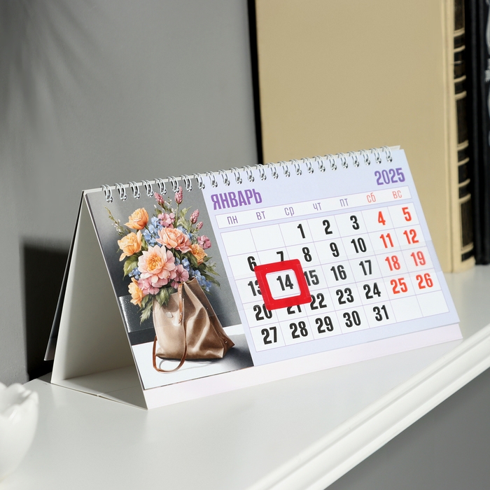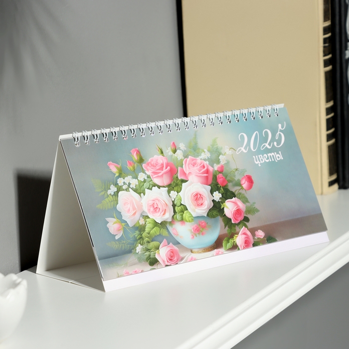 Календарь настольный, домик с курсором "Цветы" 2025 год, 10,5 х 22 см