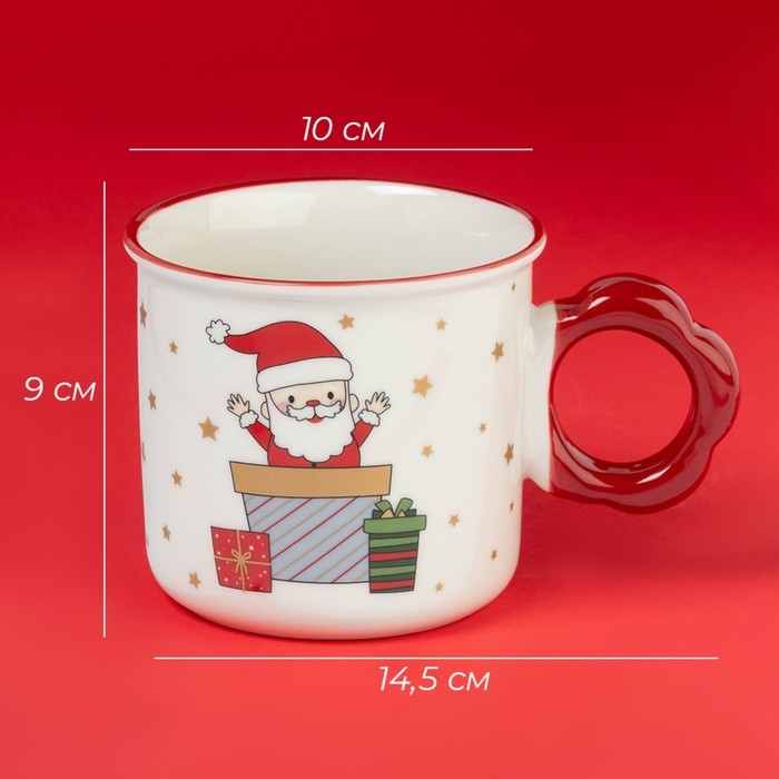 Новогодняя кружка Доляна «Веселый дедушка», 400 мл, 14,5×10×9 см, цвет белый