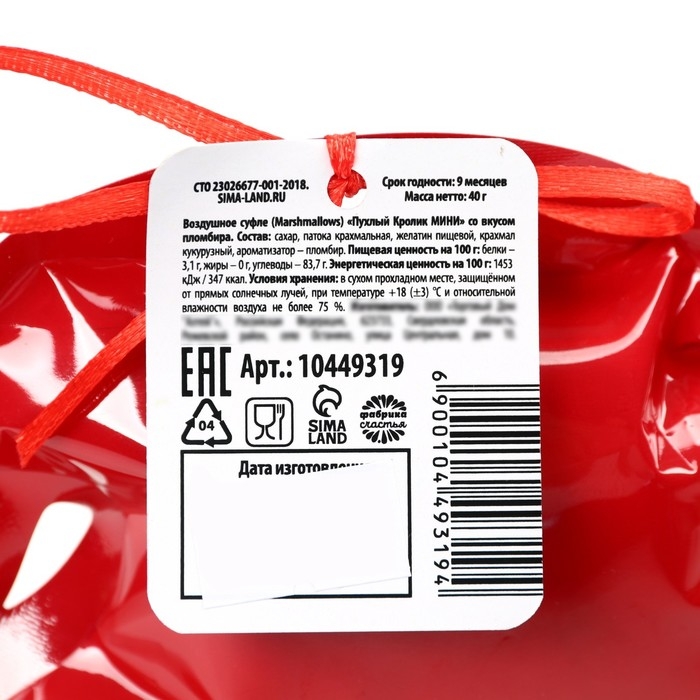 Состав: сахар, патока крахмальная, желатин пищевой, крахмал кукурузный, ароматизатор – пломбир.