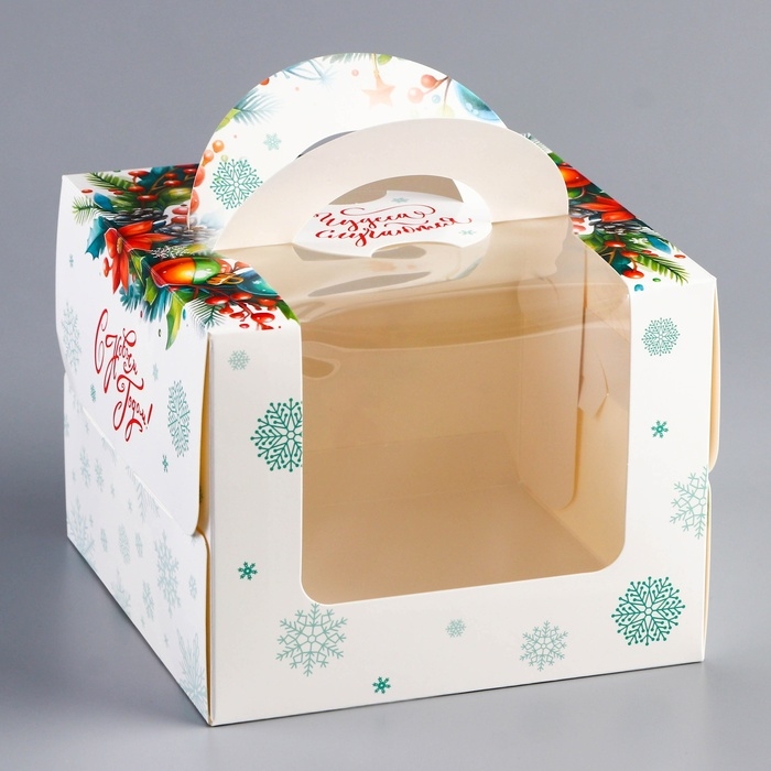 Компактный размер коробки делает её идеальной для порционных тортов, а праздничное оформление — отличным выбором для подарка, новогодних мероприятий или продаж в кафе и кондитерских.