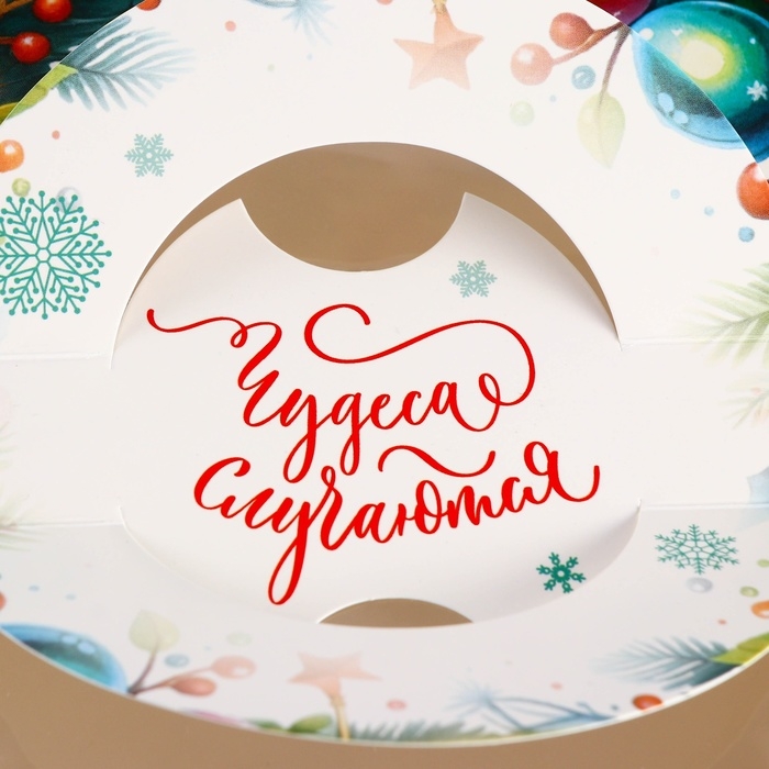 Новый год. Коробка под бенто-торт с окном "Загадай желание", 16 х 16 х 12,5 см