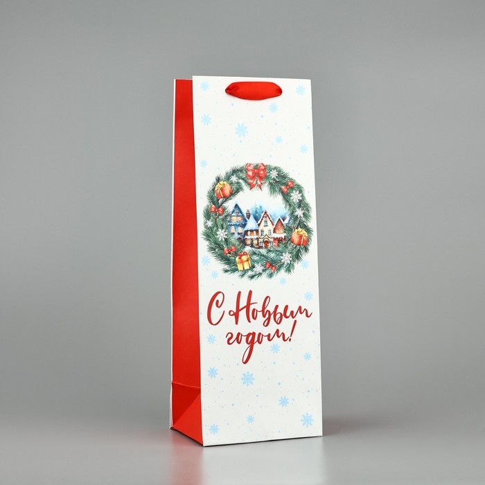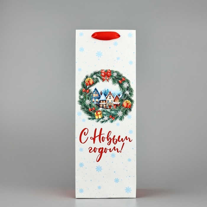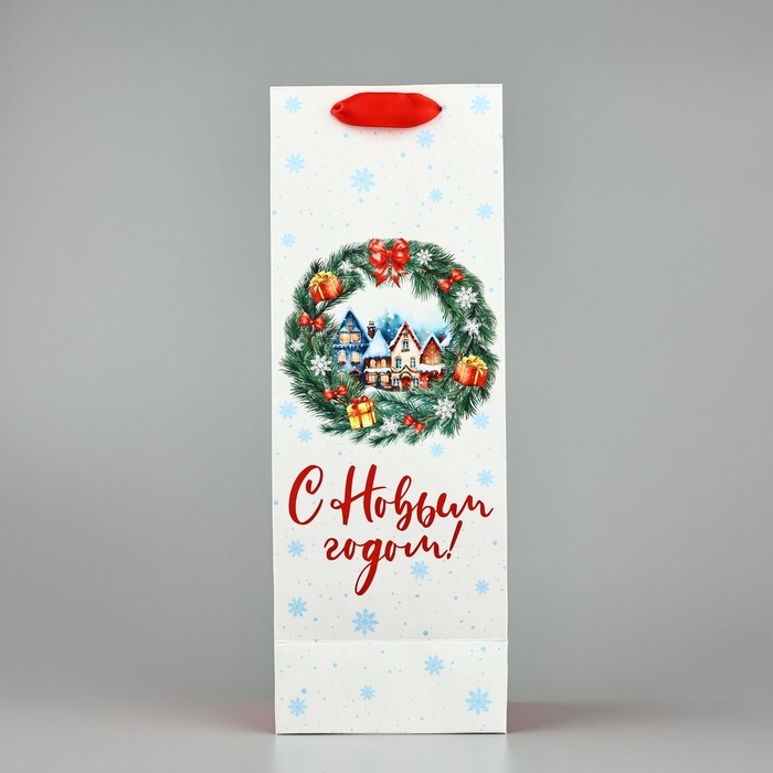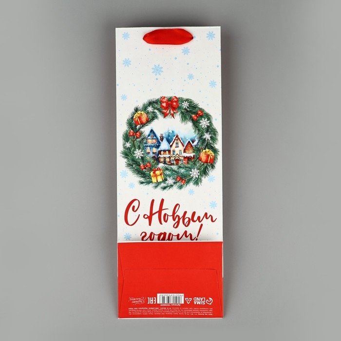 Пакет под бутылку «С Новым годом», венок, 13 х 36 х 10 см, Новый год