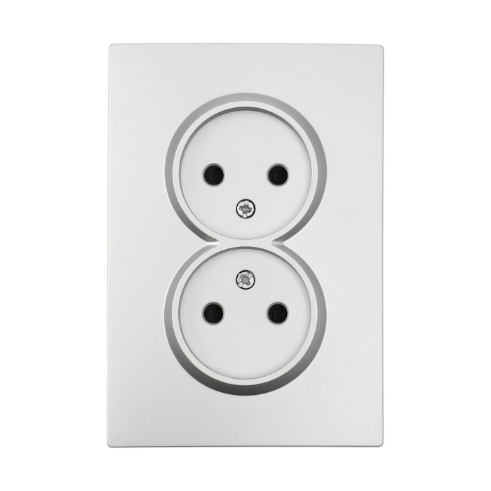 Розетка двухместная TOT Elegant, 10 А, скрытая, без з/к, серебристая