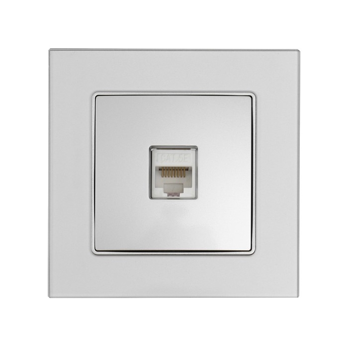 Розетка компьютерная одноместная TOT Glossy Glass, скрытая, стекло, серебристая