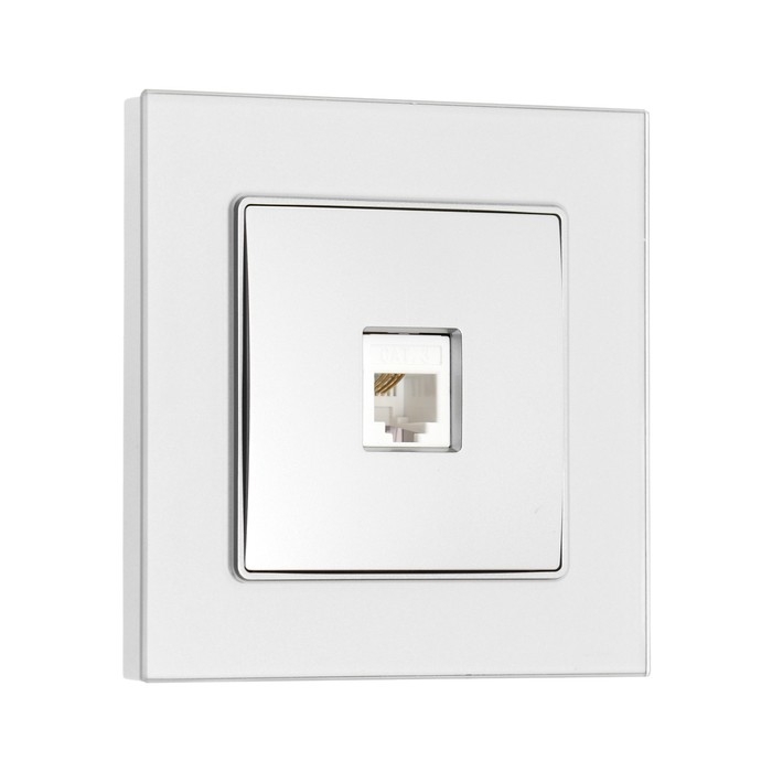 Розетка телефонная одноместная TOT Glossy Glass, скрытая, стекло, серебристая