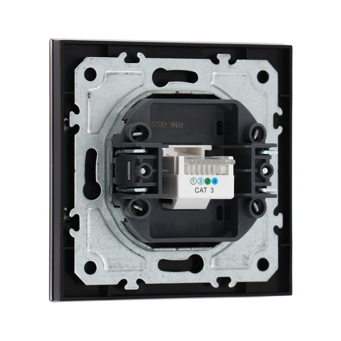 Розетка телефонная одноместная TOT Glossy Glass, скрытая, стекло, черная