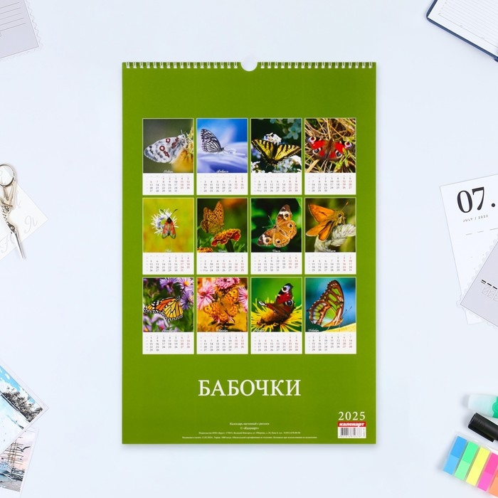 Календарь перекидной на ригеле А3 "Бабочки" 2025 год, 32 х 48 см