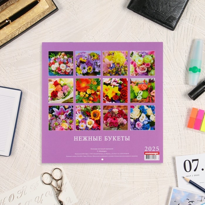 Календарь перекидной на скрепке "Нежные букеты" 2025 год, 12 листов, 29х29 см