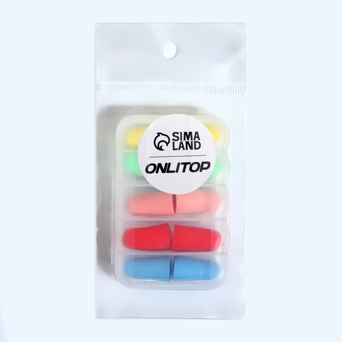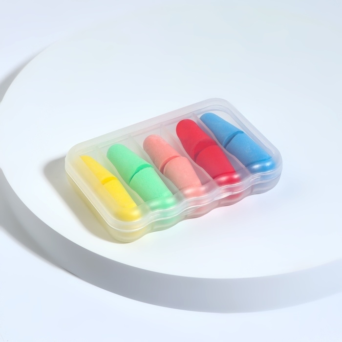 Беруши, набор - 5 пар, в футляре, разноцветные