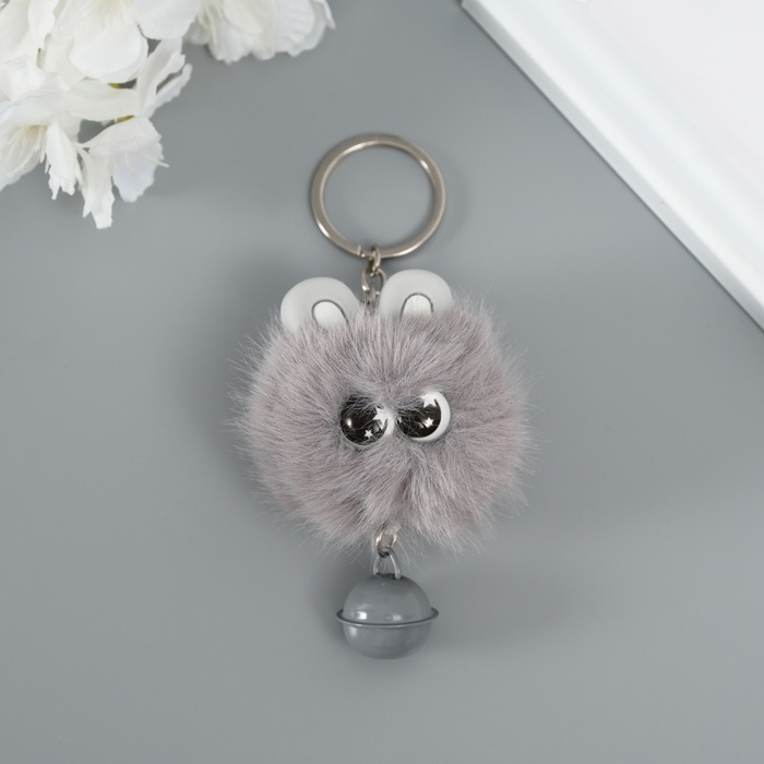 Пушистик на кольце "Звёздные глазки с бубенчиком" серый 8,5х6х6 см