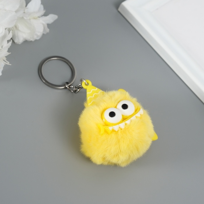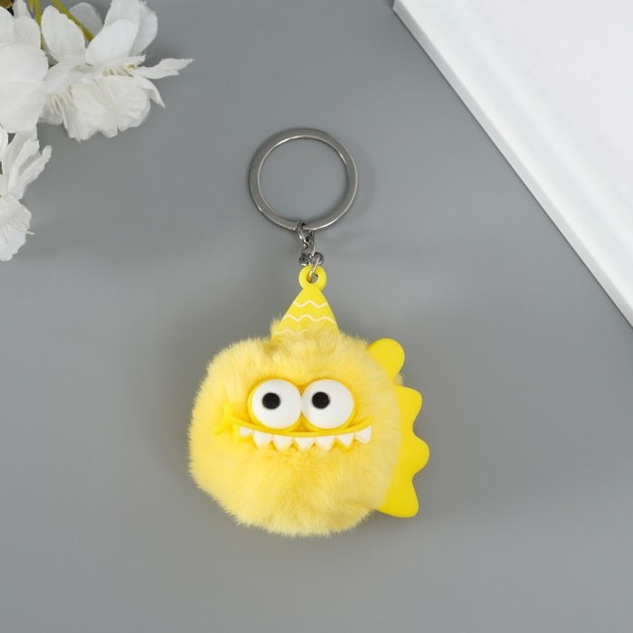 Пушистик на кольце "Пиранья" жёлтый 7,5х7х6 см