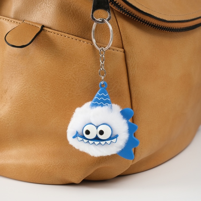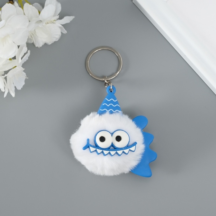 Пушистик на кольце "Пиранья" белый 7,5х7х6 см