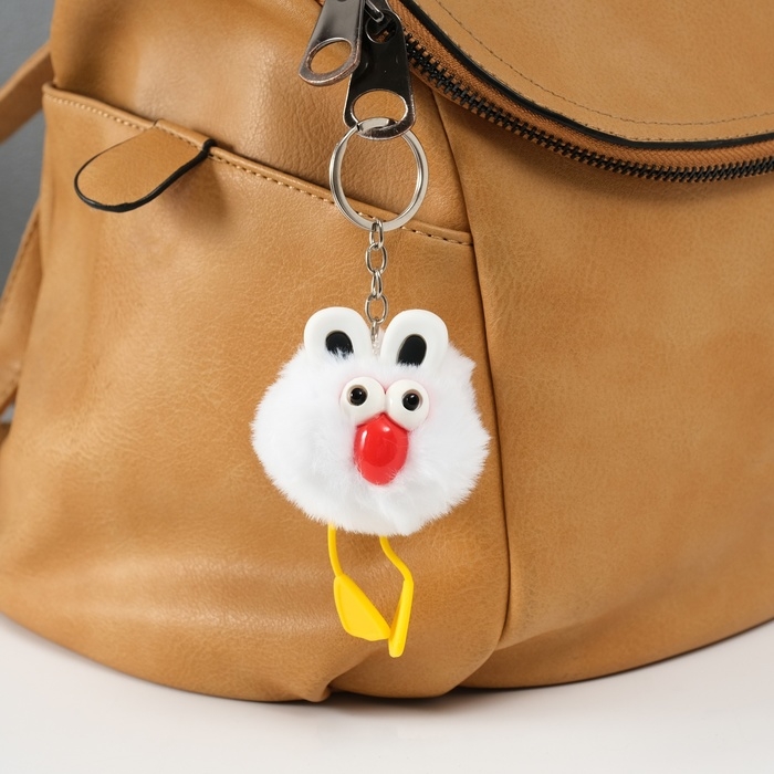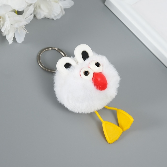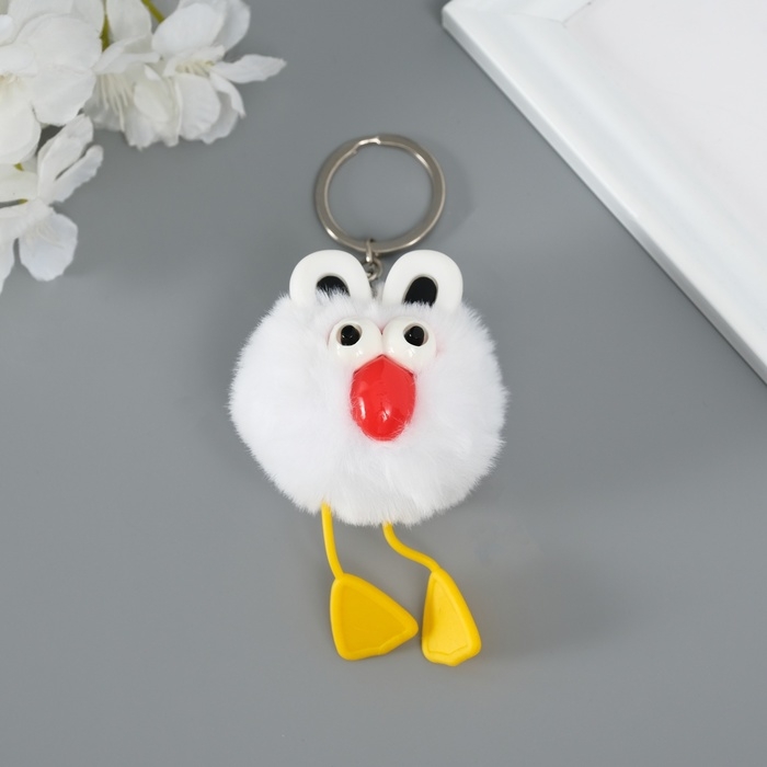 Пушистик на кольце "Большеглазая ворона" белый 9,5х6х6 см