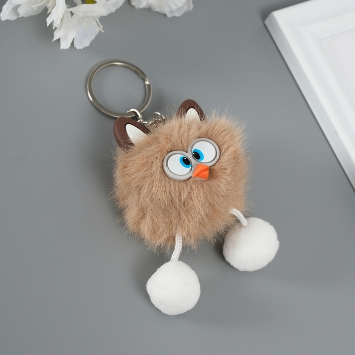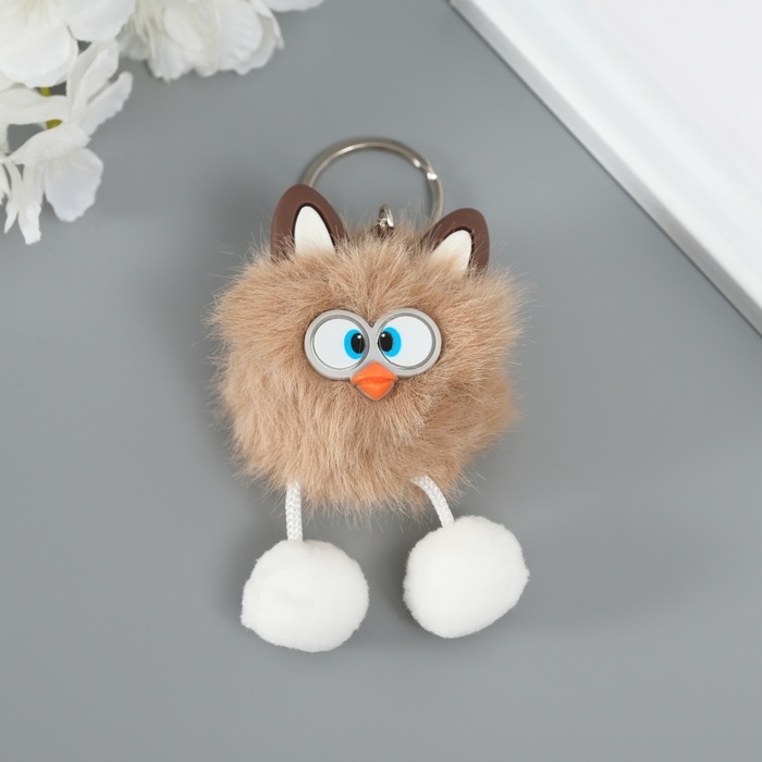 Пушистик на кольце "Косые глазки" коричневый 9,5х6х6 см