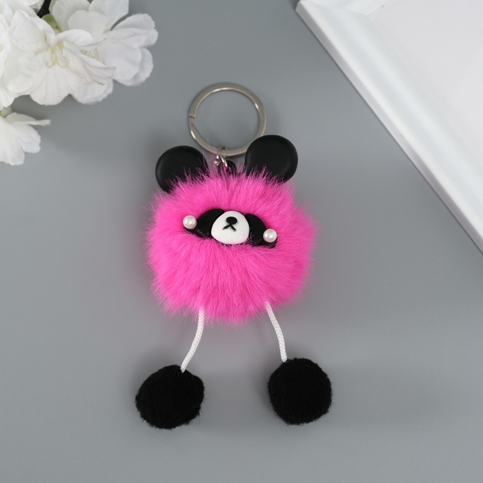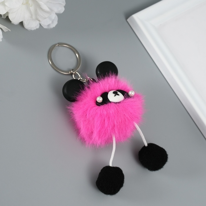 Пушистик на кольце "Панда модник" розовый 9х6х6 см