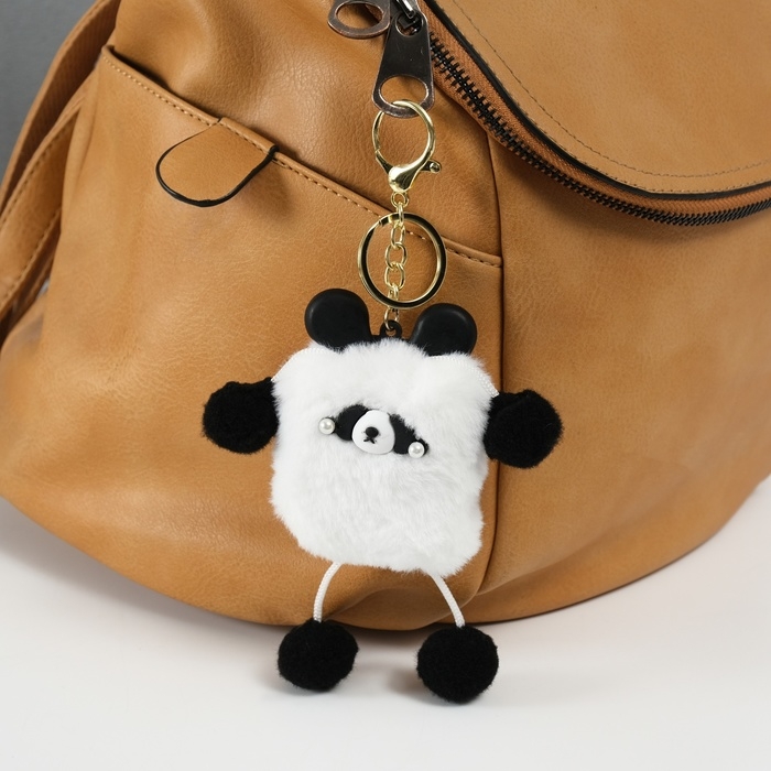 Пушистик на кольце "Квадратная панда" белый 14,5х10х2 см