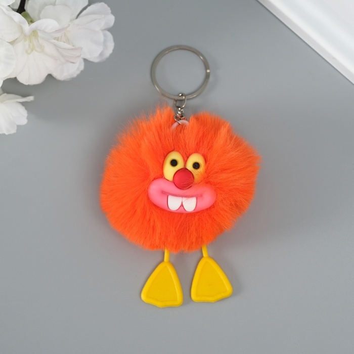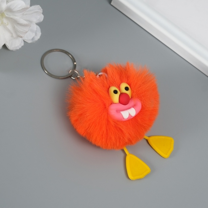 Пушистик на кольце "Зубастик" оранжевый 7,6х6х6 см