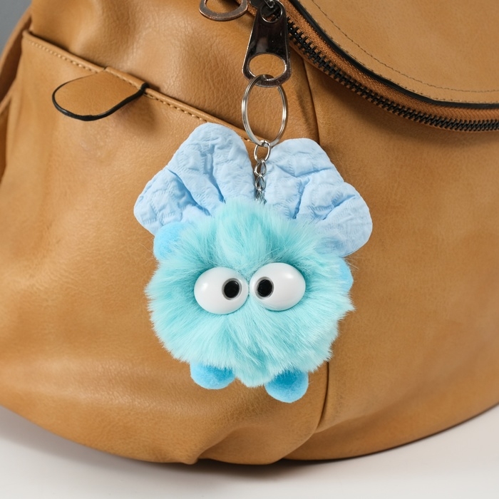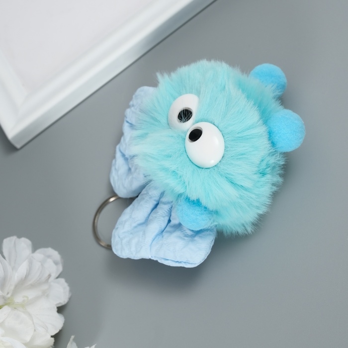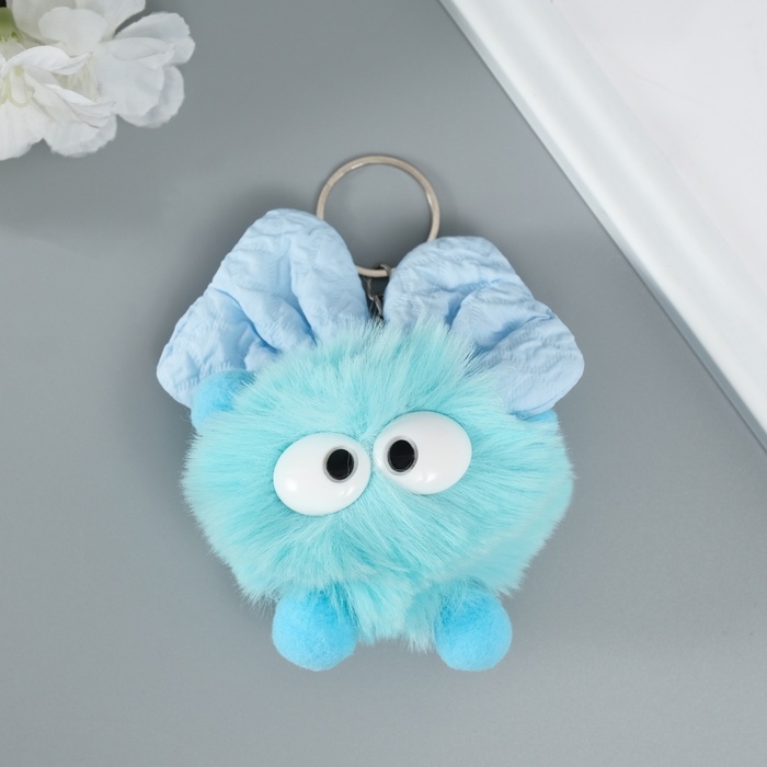 Пушистик на кольце "Мася с большим бантом" голубой 12х8х8 см