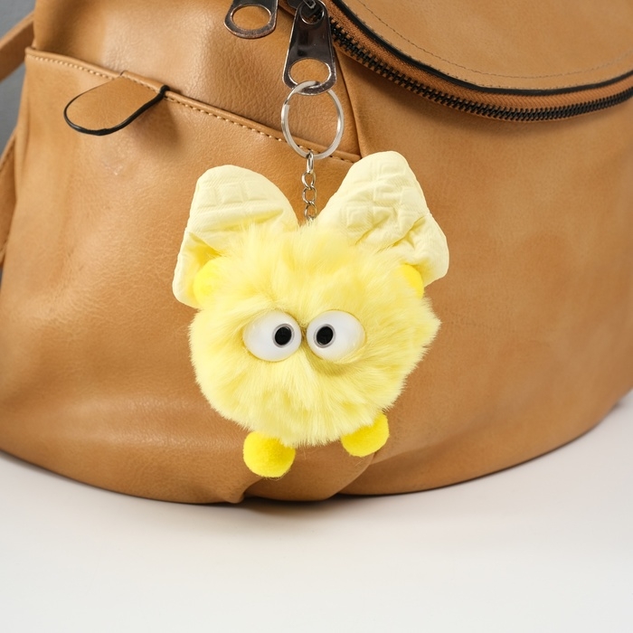 Пушистик на кольце "Мася с большим бантом" жёлтый 12х8х8 см