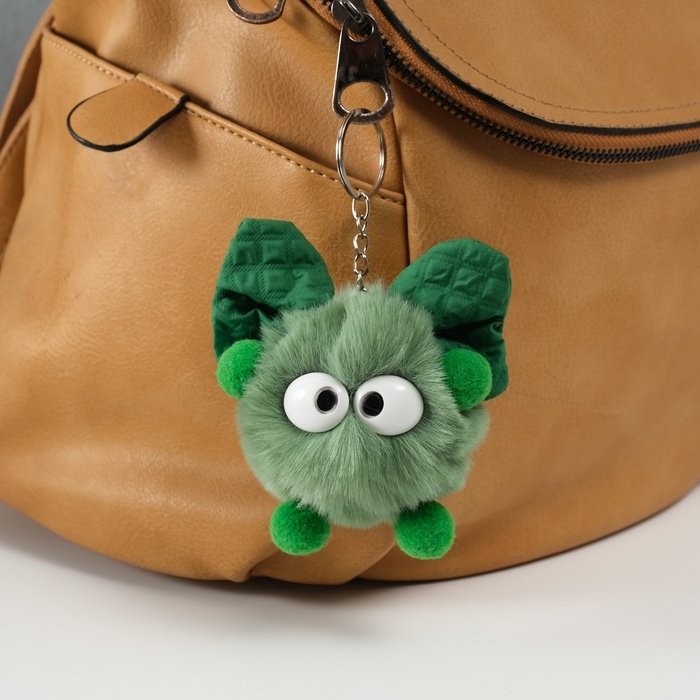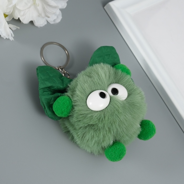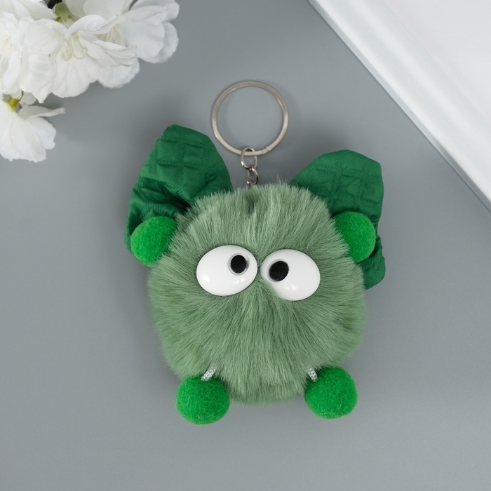 Пушистик на кольце "Мася с большим бантом" зелёный 12х8х8 см