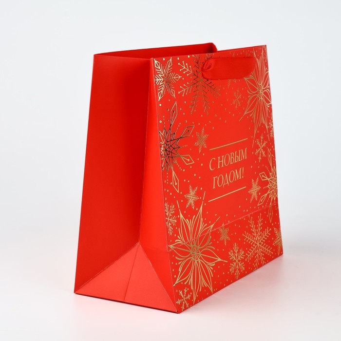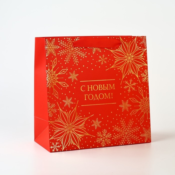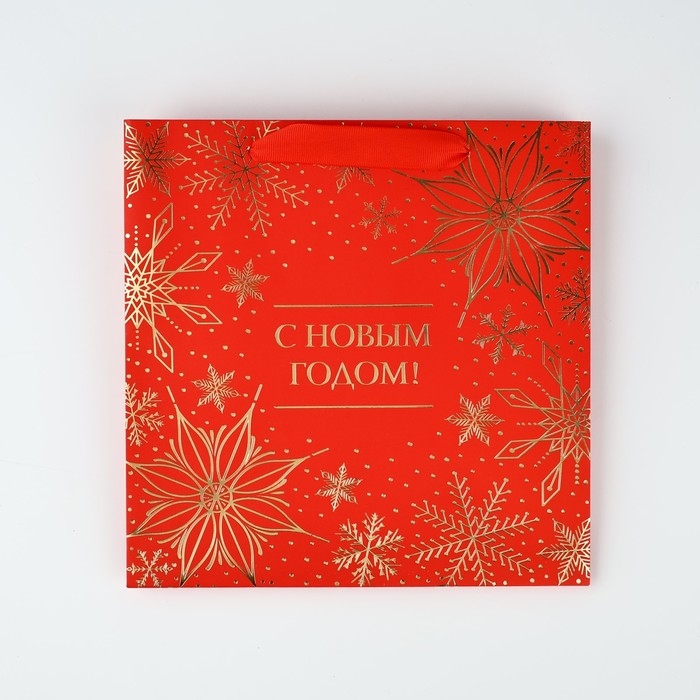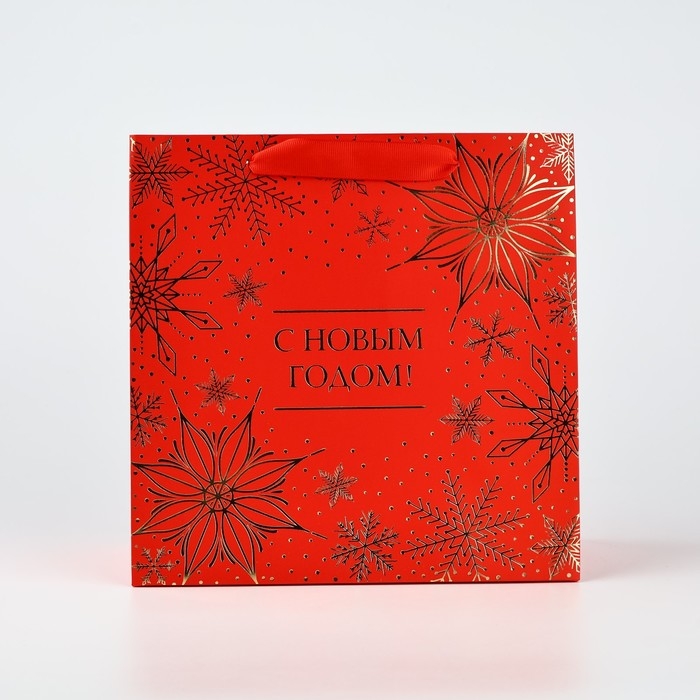 Пакет подарочный новогодний ламинированный квадратный «С Новым годом», тиснение 22 х 22 х 11 см , Новый год