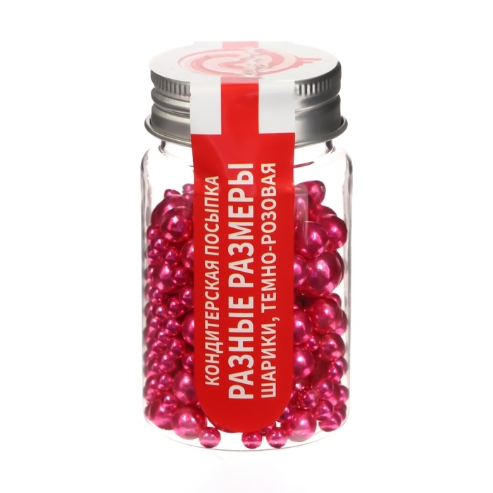 Кондитерская посыпка "Разные размеры", шарики, темно-розовый, 50 г