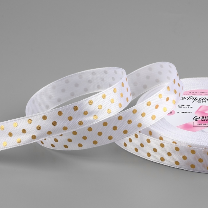 Лента атласная с тиснением «Горох», 15 мм × 23 ± 1 м, цвет белый №01