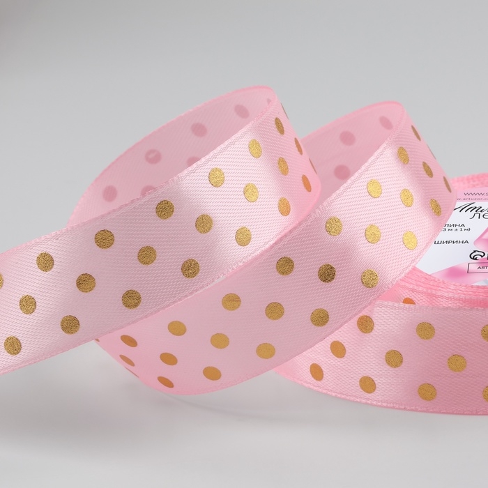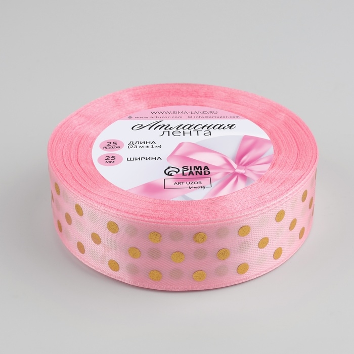 Лента атласная с тиснением «Горох», 25 мм × 23 ± 1 м, цвет розовый №04