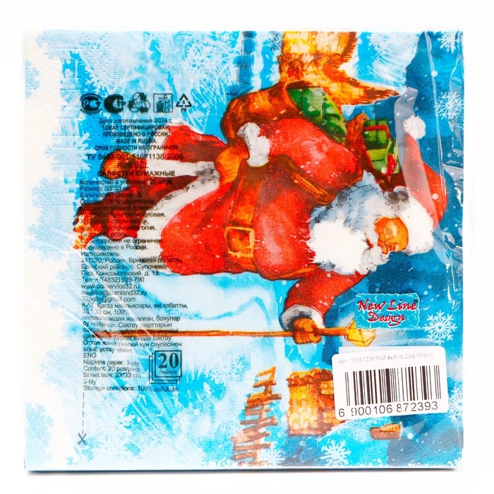 Новогодние салфетки бумажные Мой выбор «Дед Мороз» 3 слоя, 33х33 см, 20 шт