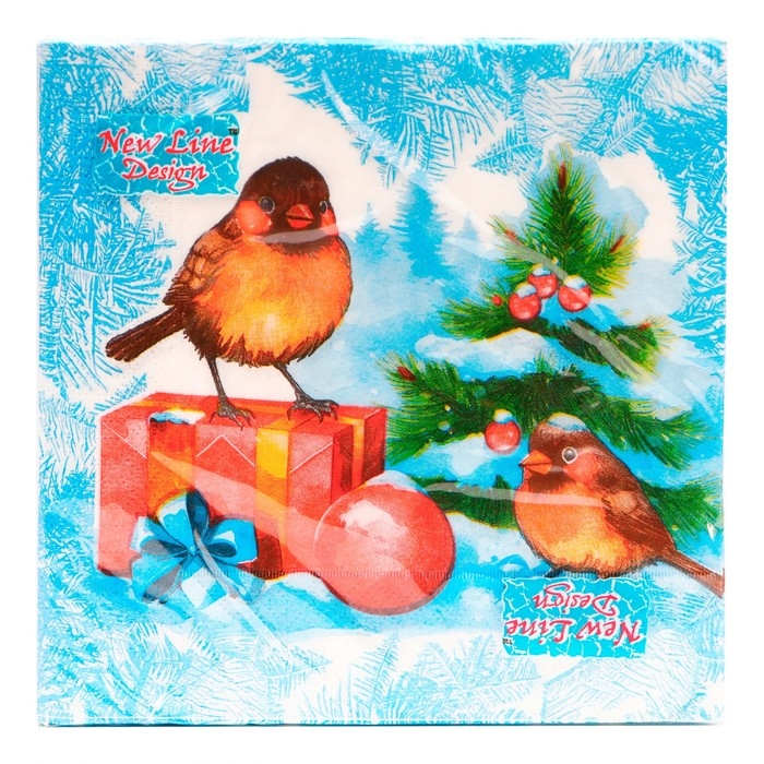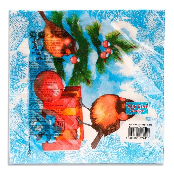 Новогодние салфетки бумажные Мой выбор «Снегири и Подарки» 3 слоя, 33х33 см, 20 шт