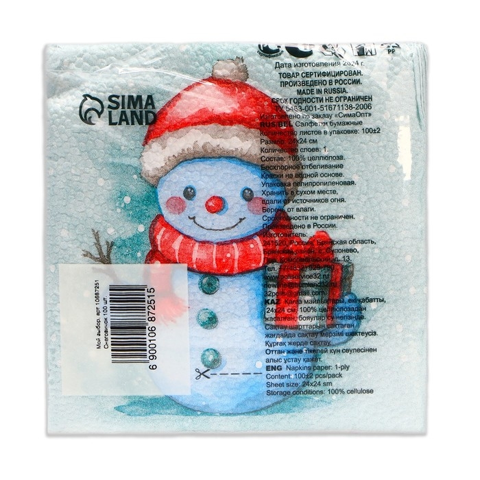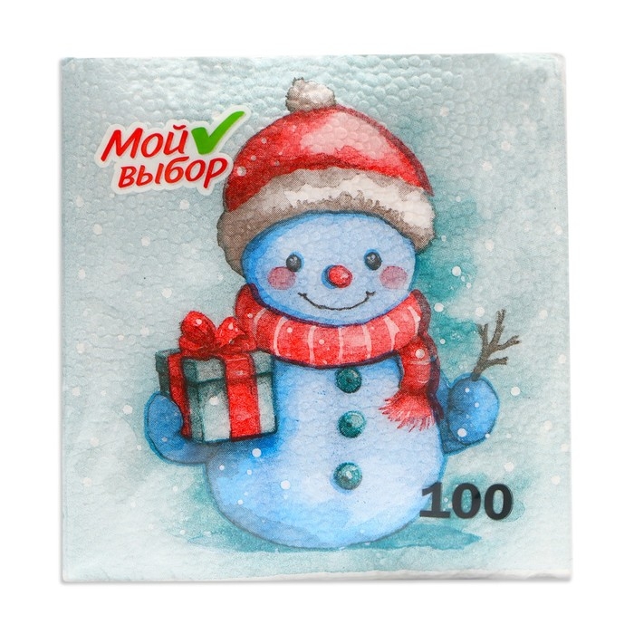 Новогодние салфетки бумажные Мой выбор «Снеговичок» 1 слой, 24х24 см, 100 шт