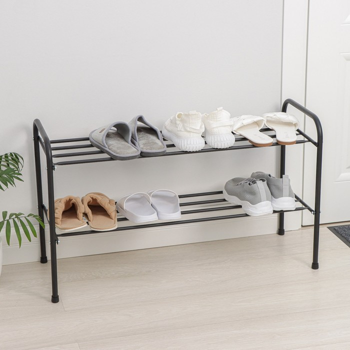 Подставка для обуви, 2 яруса, 82,5×32×48,5 см, цвет чёрный
