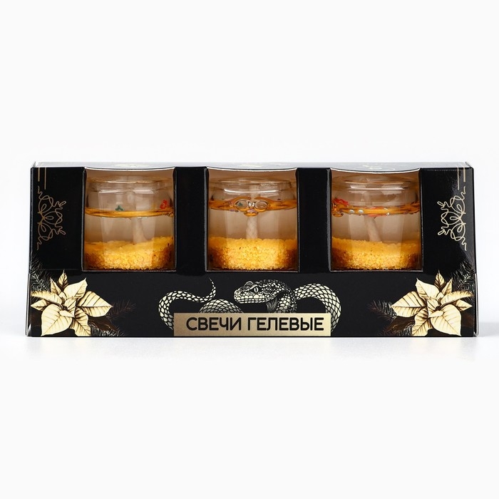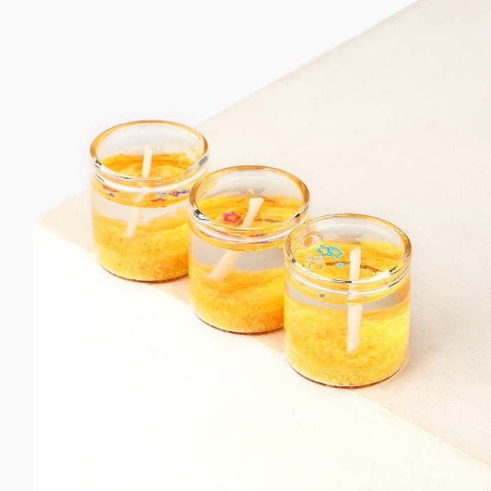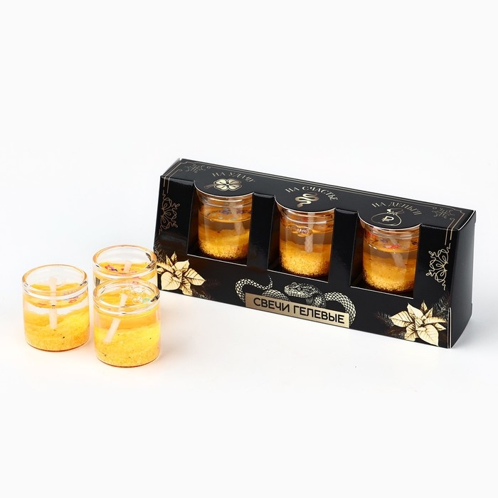 Свечи гелевые новогодние «На счастье» на Новый год на Новый год, 3 шт, золотые, 2,5 х2,5 х 2,5 см