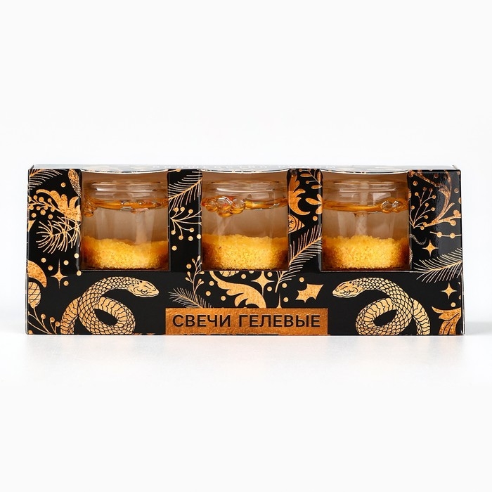 Свечи гелевые новогодние «Волшебство рядом» на Новый год на Новый год, 3 шт, золотые, 2,5 х2,5 х 2,5 см