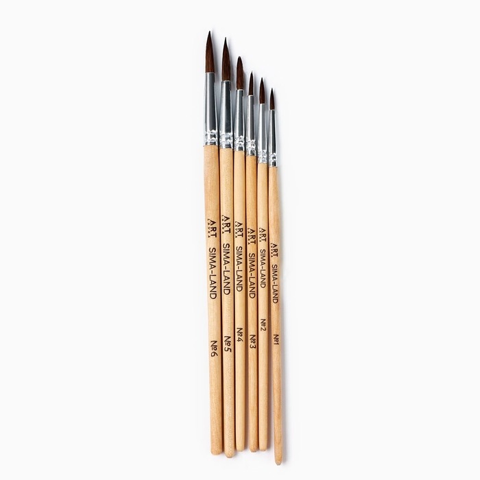 Кисть для рисования набор 6 шт. белка № 1,2,3,4,5,6 «Мона Лиза»