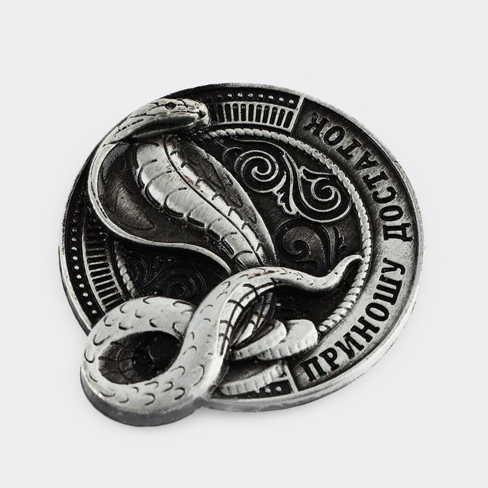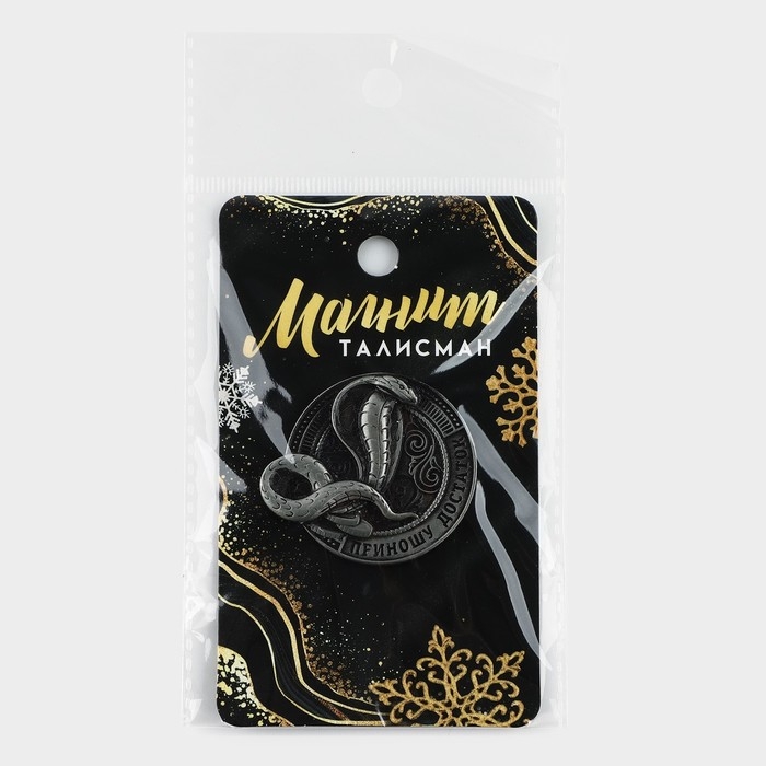 Магнит новогодний «Приношу достаток» на Новый год на Новый год, диам. 4 см, серебро