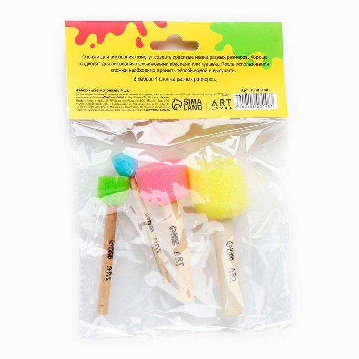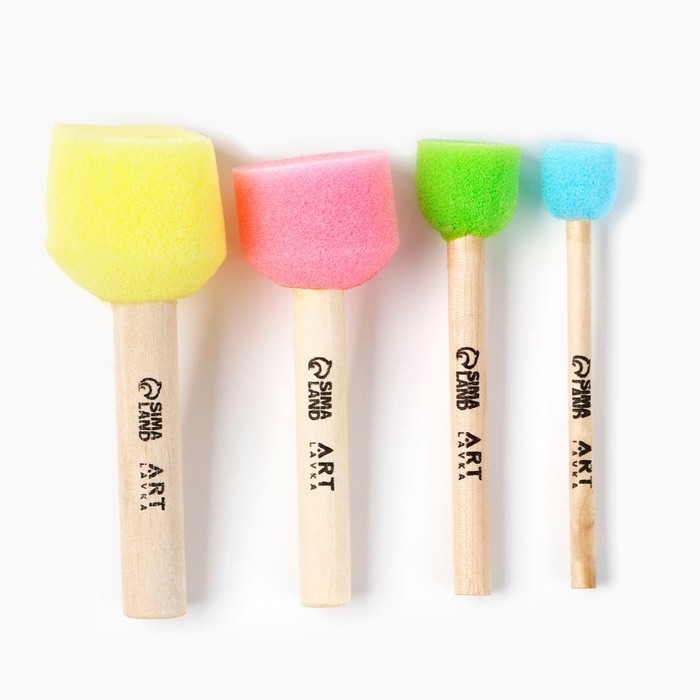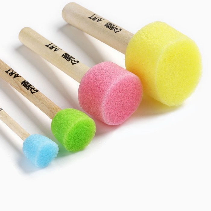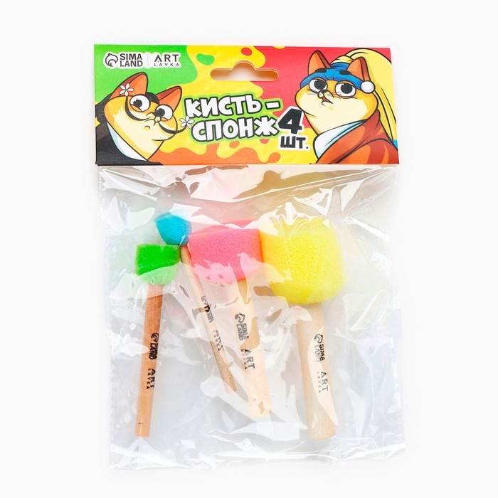 Кисть для рисования спонж набор 4 штуки, цветные «Коты-художники»