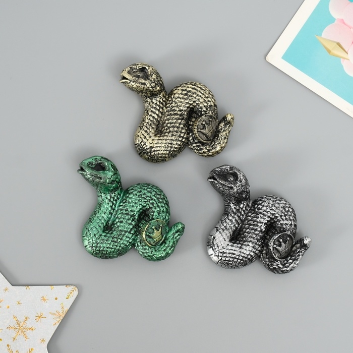 Магнит полистоун "Змейка с короной на монетке" МИКС 4,5х1,5х5,5 см