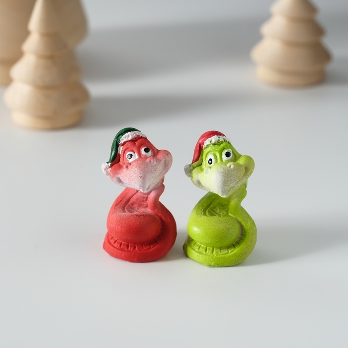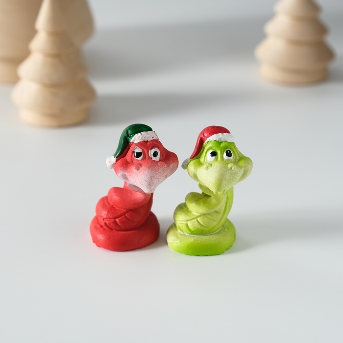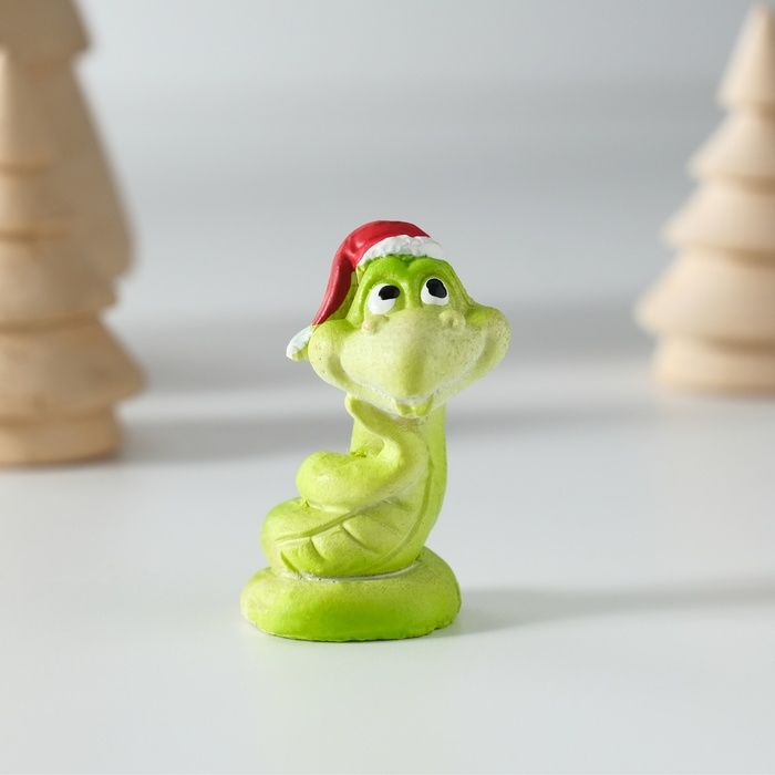 Сувенир полистоун "Добрый змей в новогоднем колпаке" красно-зелёный МИКС 2,5х2,5х4 см