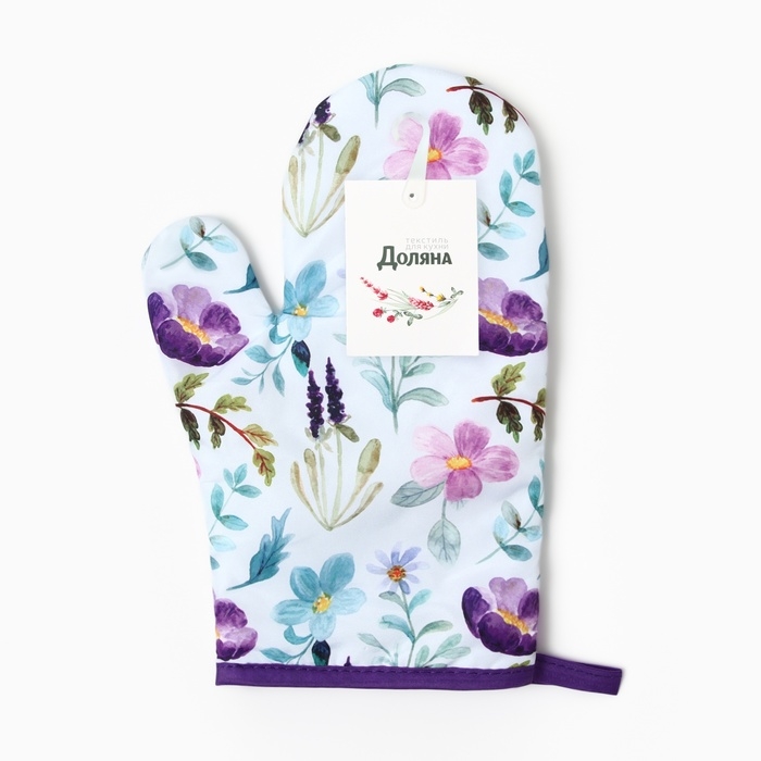 Варежка-прихватка Доляна Цветочки 26*16см, 100%п/э