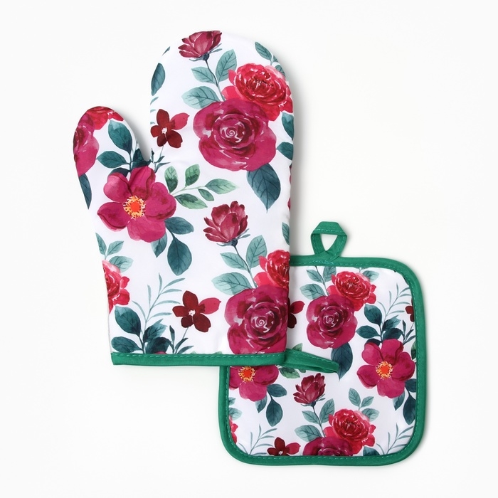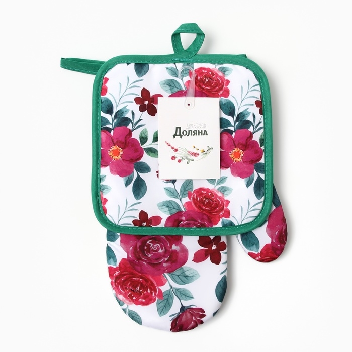Кухонный набор 2 пр.Доляна Розы прихватка 17*17см, варежка-прихватка 26*16 см,100%п/э