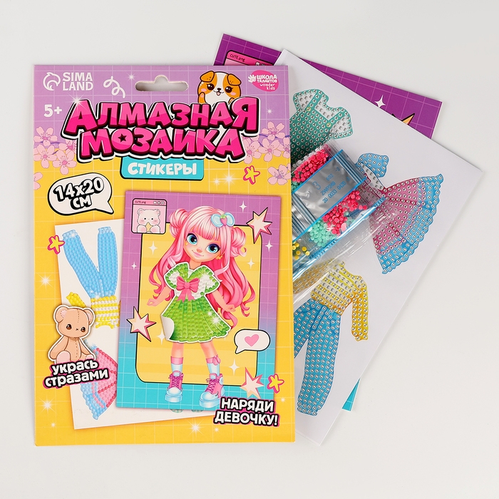 Алмазная мозаика с частичным заполнением для детей. Наряди персонажа «Модная девочка»