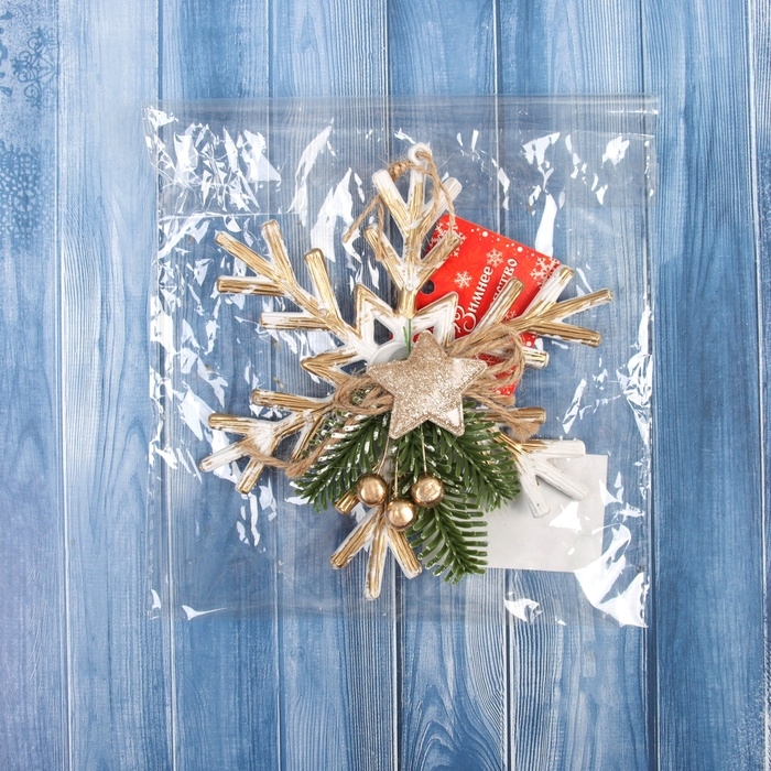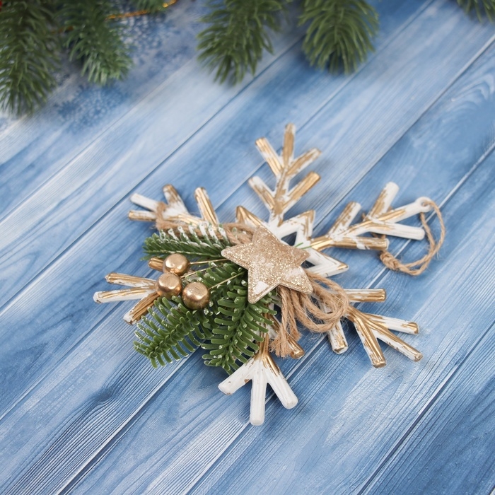 Украшение ёлочное "Снежинка ретро с веточкой" 14 см