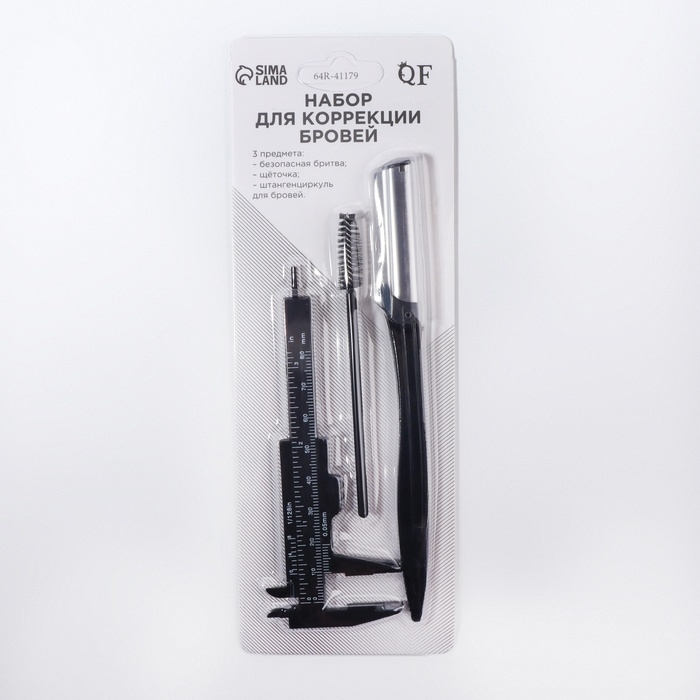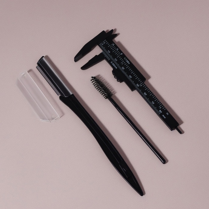 С помощью штангенциркурля Вы легко сможете построить необходимую форму. Бритвой комфортно и точечно уберёте лишние волоски. А щеточка поможет аккуратно уложить брови.