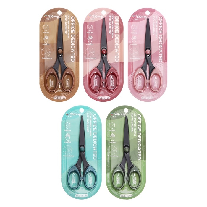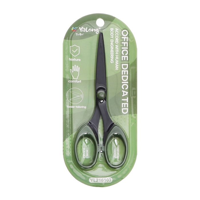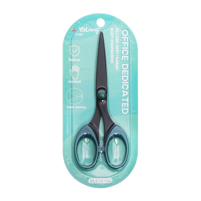 Ножницы канцелярские 15,8 см Офис, черное лезвие, пластиковые ручки, блистер, МИКС
