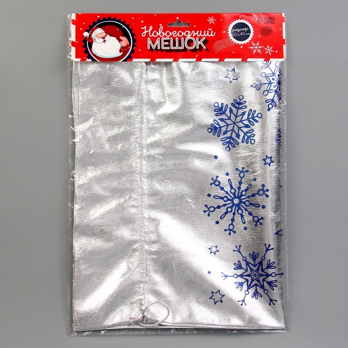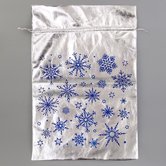 Подарочный мешок Деда Мороза «Снежинки», серебро, 60 х 40см