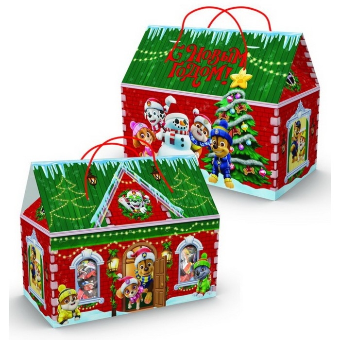 Пакет-коробка, новогодний "С Новым годом" 37 х 30 х 20 см, Щенячий патруль