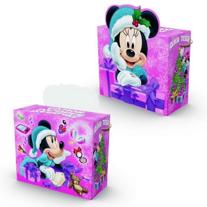 Пакет-коробка, новогодний "Самой лучшей девочке", 27 х 23 х 12 см, Минни Маус
