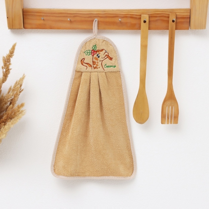 Новый год. Символ года. Змея. Кухонное полотенце Доляна "Счастья" 24х38 см, 280г/м2 микрофибра,100%п/э