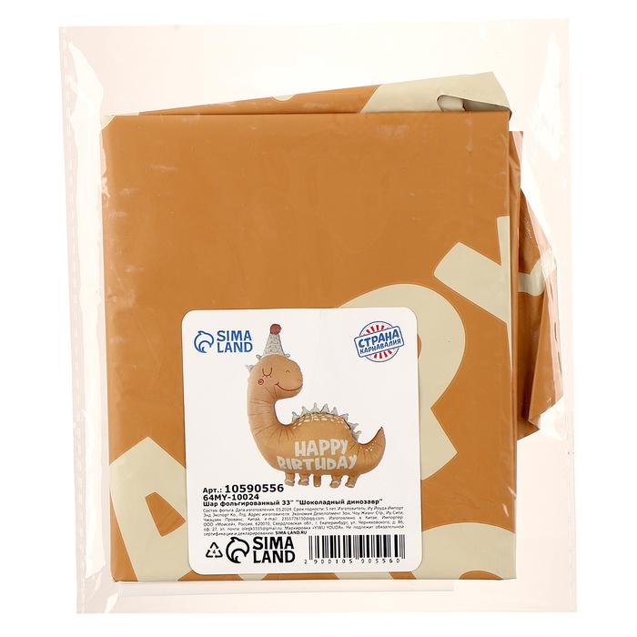 Шар фольгированный 33" «Шоколадный динозавр»